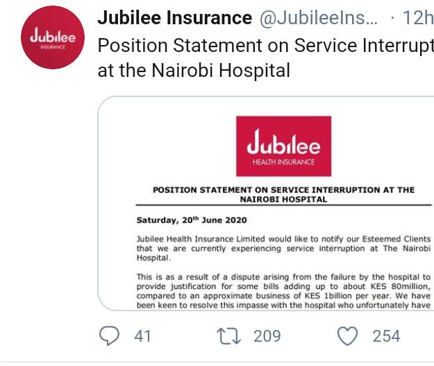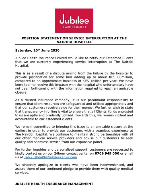 Reason Why Jubilee Insurance Is Not Ready To Settle Medical Bills