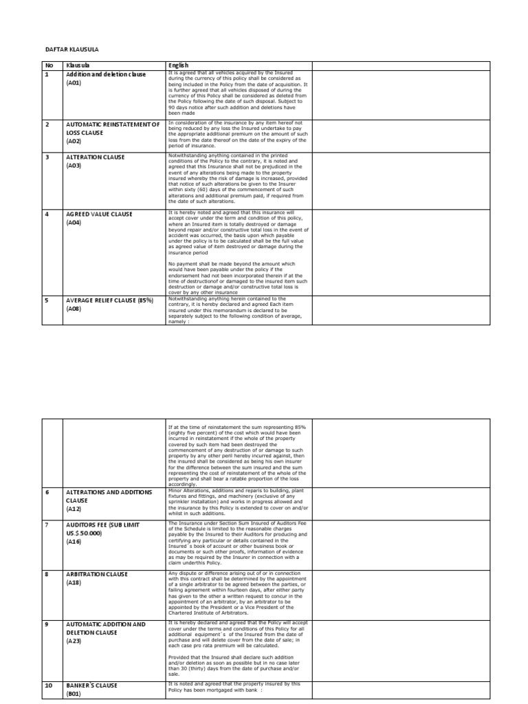 Daftar Klausula Insurance Mortgage Law