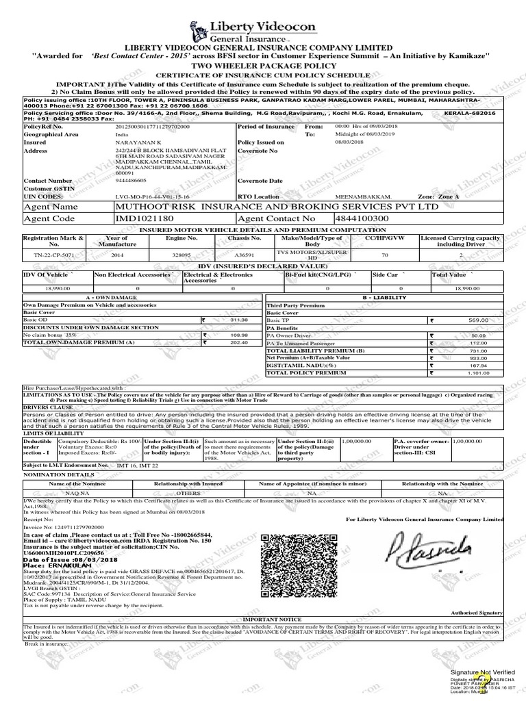 Tn22cp5071 Insurance Liberty Videocon 08 Mar 2019 Pdf Insurance Policy Insurance