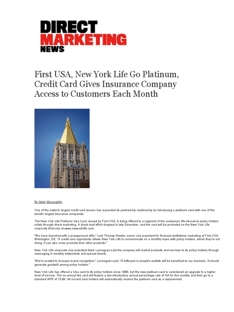 First Usa New York Life Go Platinum Credit Card Gives Insurance