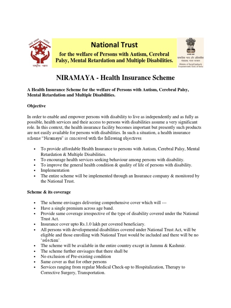 Niramaya Scheme A Health Insurance Scheme National Trust