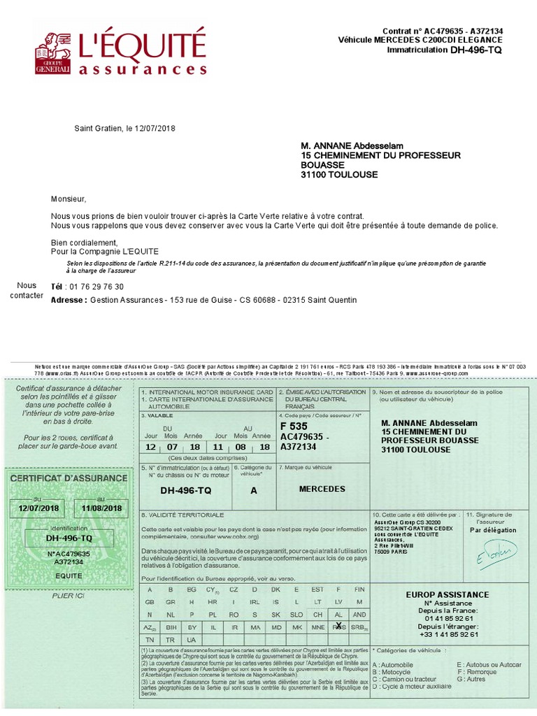 La Carte Verte Certificat D Assurance Est Une Preuve D Assurance