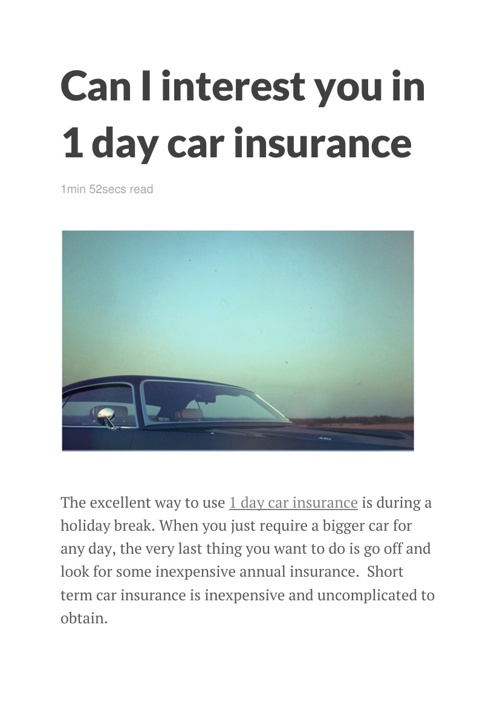 Short term holiday car insurance. Compare the easiest option for getting car insurance for a day a week a month or however long you need it. Short term car insurance also labelled temporary car insurance by some companies insures a vehicle for a short period of time with cover that can extend anywhere from 24 hours to a few months. What s short term car insurance. You can buy a policy online anytime you need it and with our speedy quote process you can get prices and policies in just a couple of minutes whether you want cover for a few hours or it s weekly car insurance you need.