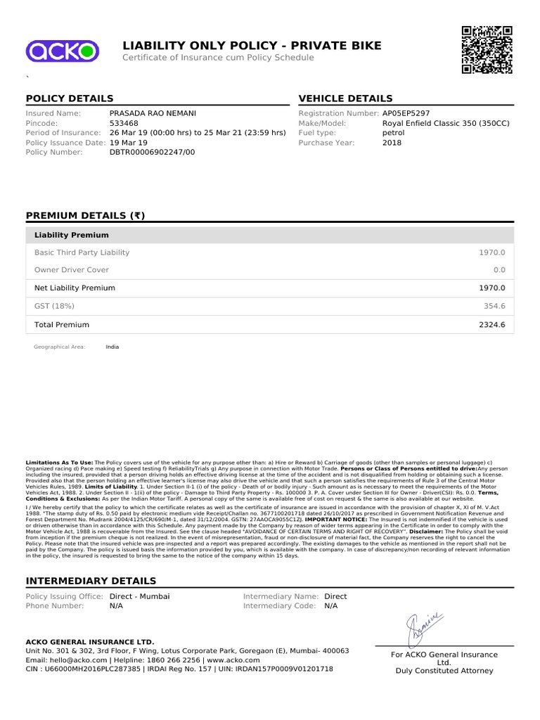 Ackopolicy Dbtr00006902247 00 Vehicles Insurance